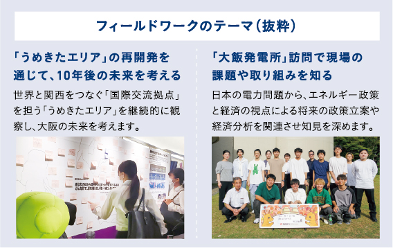 講義等で修得したデータ分析能力や専門知識を携えてフィールドワークに参加できます。経済活動の中心地に赴き実態を知る中で、実社会における課題の発見・調査・解決に取り組みます。