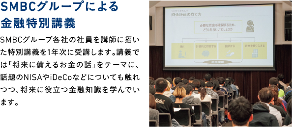 実社会で役立つ金融知識を深め、「時間を味方につける」という視点を養います。資産管理、投資、借入、保険、税金などを学修することで、将来のライフプランを実現するために必要な責任ある判断力と行動力が磨かれます。
