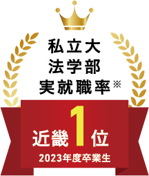 企業に必ず求められるコンプライアンス。リーガルマインドを修得しビジネスでの課題解決能力を身に付けます。加えて、独自の「クロスオーバーカリキュラム」で本格的な経営・経済科目を修得できるため、幅広い業界で活躍できるビジネスパーソンを輩出し、高い就職率を実現しています。