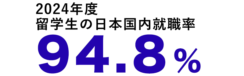 本学では、留学生一人ひとりの学びと将来を支えるため、日本語能力の向上、専門分野の学修、そして就職活動サポートまで、きめ細やかな支援体制を整えています。その結果、国内屈指の留学生就職率を誇っています。