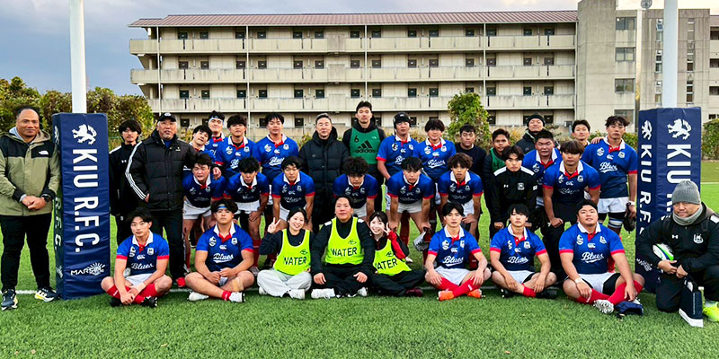 本学ラグビー部は、今年度C2リーグでの戦いが高く評価(6戦全勝)され、全ポジションでベスト15に選出されるという快挙を達成しました。また、本学ラグビー部は、コロナ禍の影響により部員数が減少し、合同チームでの公式戦出場を余儀なくされるなど、存続の危機に直面した時期もありました。しかし、吉田監督(経営学部准教授)就任後、わずか1年で単独チームとして公式戦に出場するまでに再建を果たし、着実に歩みを重ねてきました。