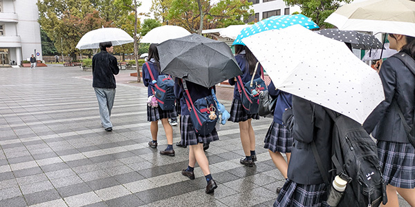 体験授業の後には、あいにくの雨模様ではありましたが、キャンパスツアーや学食体験も実施しました。