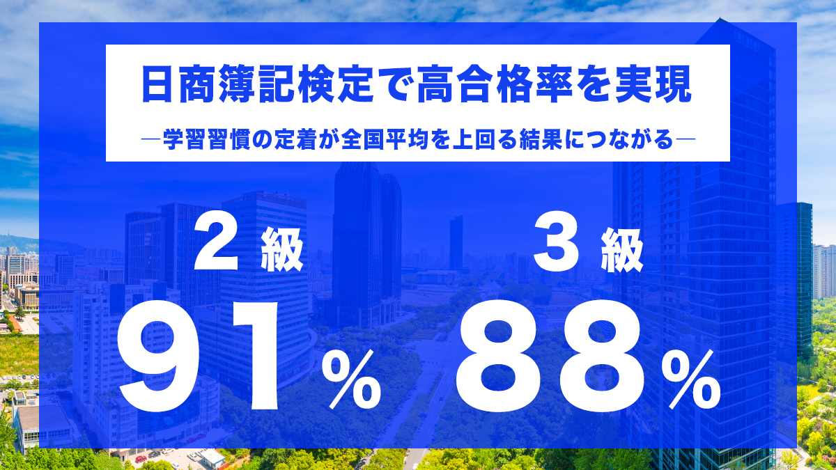 - 日商簿記2級:合格率91%(合格者31名)