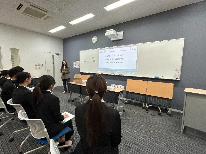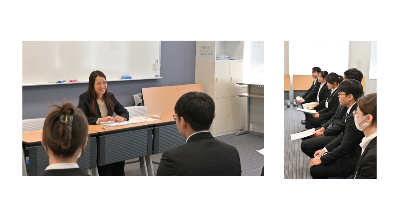 午後からの企業説明会では、学生たちは各企業の特色や仕事内容を真剣な面持ちで聞き、メモを取りながら企業理解を深めていました。