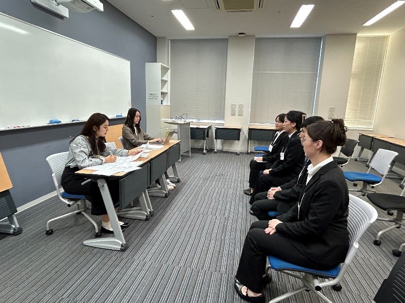 続く集団面接では、緊張しながらも自らの想いを伝えようと努力する学生たちの姿に、企業担当者からは「留学生たちの頑張りを見て、こちらが教えられた」「学ぶことが多かった」とのコメントを多数いただきました。本番前に受けた模擬面接でのフィードバックを存分に生かしながら面接に臨む姿からは、短い時間の中でも確かな成長が感じられました。