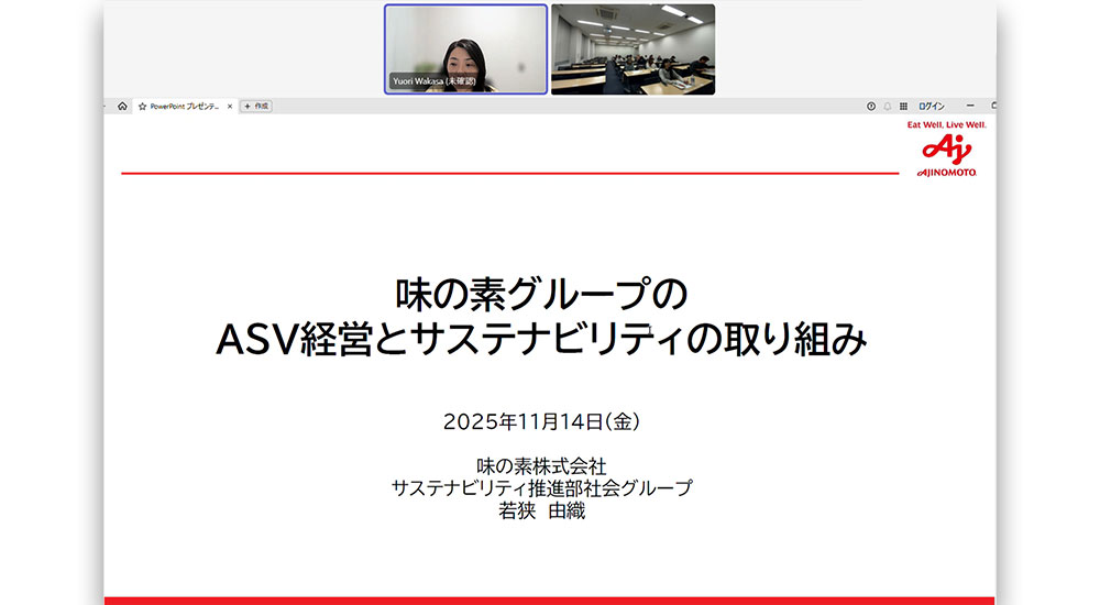 【国際学部 フィールドプロジェクト日本】味の素株式会社サステナビリティ推進部 若狭由織さんによる特別講演