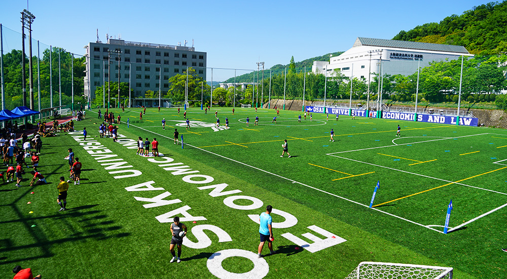 今年度初めての開催となったKEIHOラグビーフェスティバルには、大阪府、兵庫県、奈良県、滋賀県、三重県、長崎県から6校・約200名の高校生が参加し、5月とは思えない暑さの中、普段は対戦することができないチームとの白熱した試合が繰り広げられました。