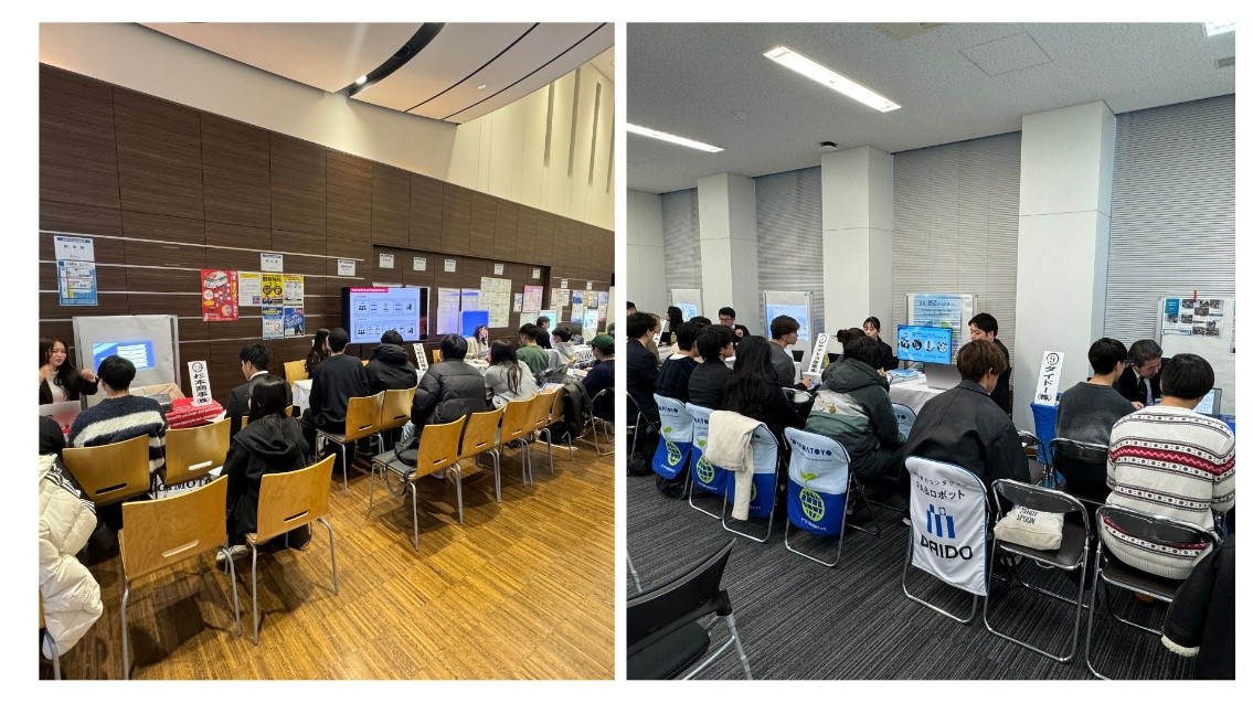 キャリアセンターでは、八尾駅前キャンパスにて「学内合同会社説明会」を12月18日・19日の2日間、開催しました。対象は27卒(学部3年生・修士1年)を中心に、1・2年生の参加も推奨し、幅広い学年の学生が企業研究・業界研究を進める機会となりました。また、外国人留学生採用実績のある企業も多数出展し、留学生が安心して企業情報を収集できる機会となりました。