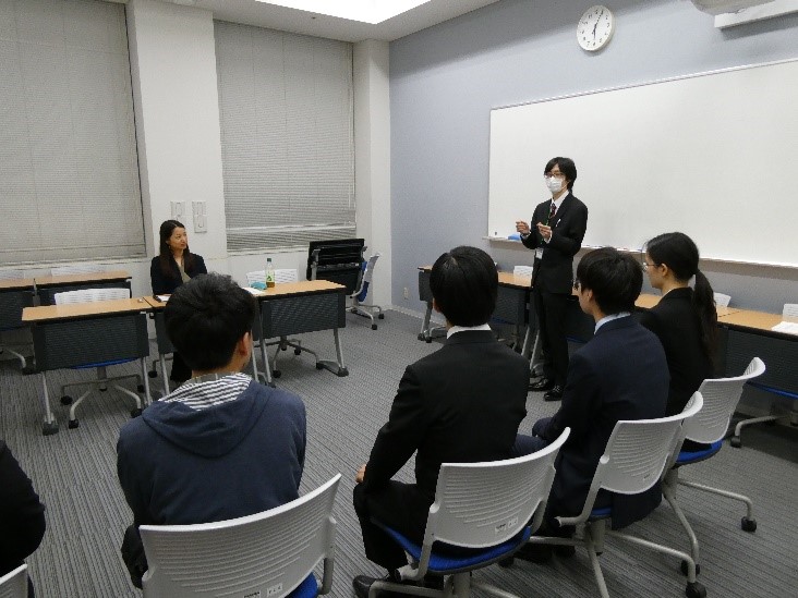 グループディスカッションでは、「社会人として活躍するために必要だと思う能力を3つ挙げてください」というテーマのもと、学生たちは5名程度のグループに分かれ討論を行いました。最初は意見がまとまらず戸惑う場面も見られましたが、話し合いを重ねるうちに方向性が見えていき、協力しながら結論をまとめ上げる姿が印象的でした。