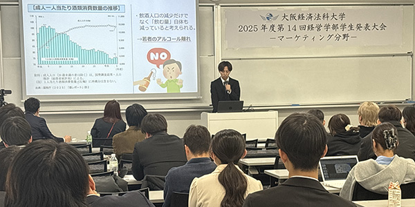 2025年度「第14回経営学部学生発表大会(マーケティング分野)」が開催され、マーケティング分野を学修する1~3年生が参加しました。