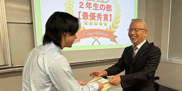 予選を勝ち抜いた各学年3名が決勝の舞台に立ち、白熱したプレゼンの末、厳正な審査を経て、最終順位が決定し、表彰が行なわれました。