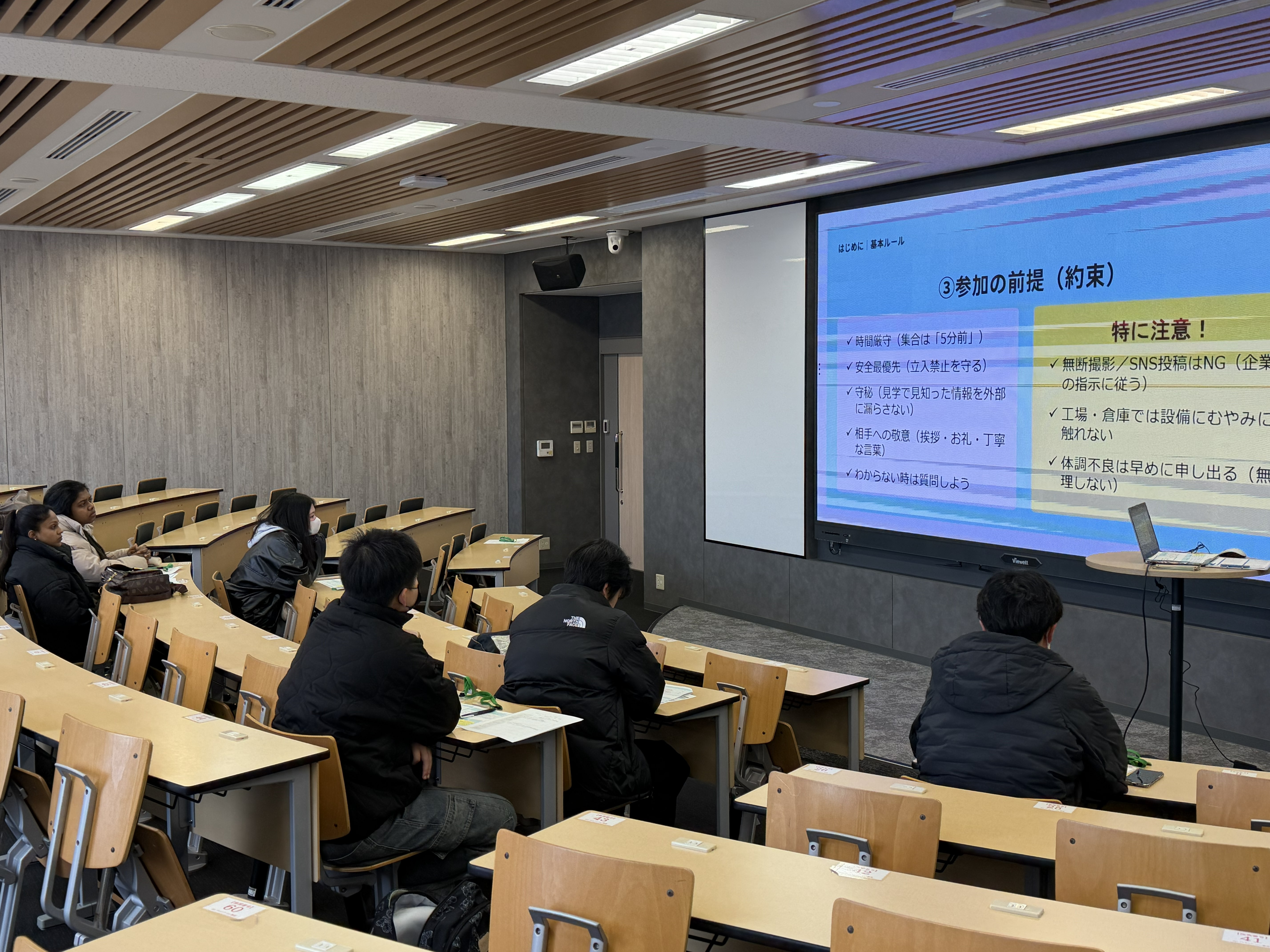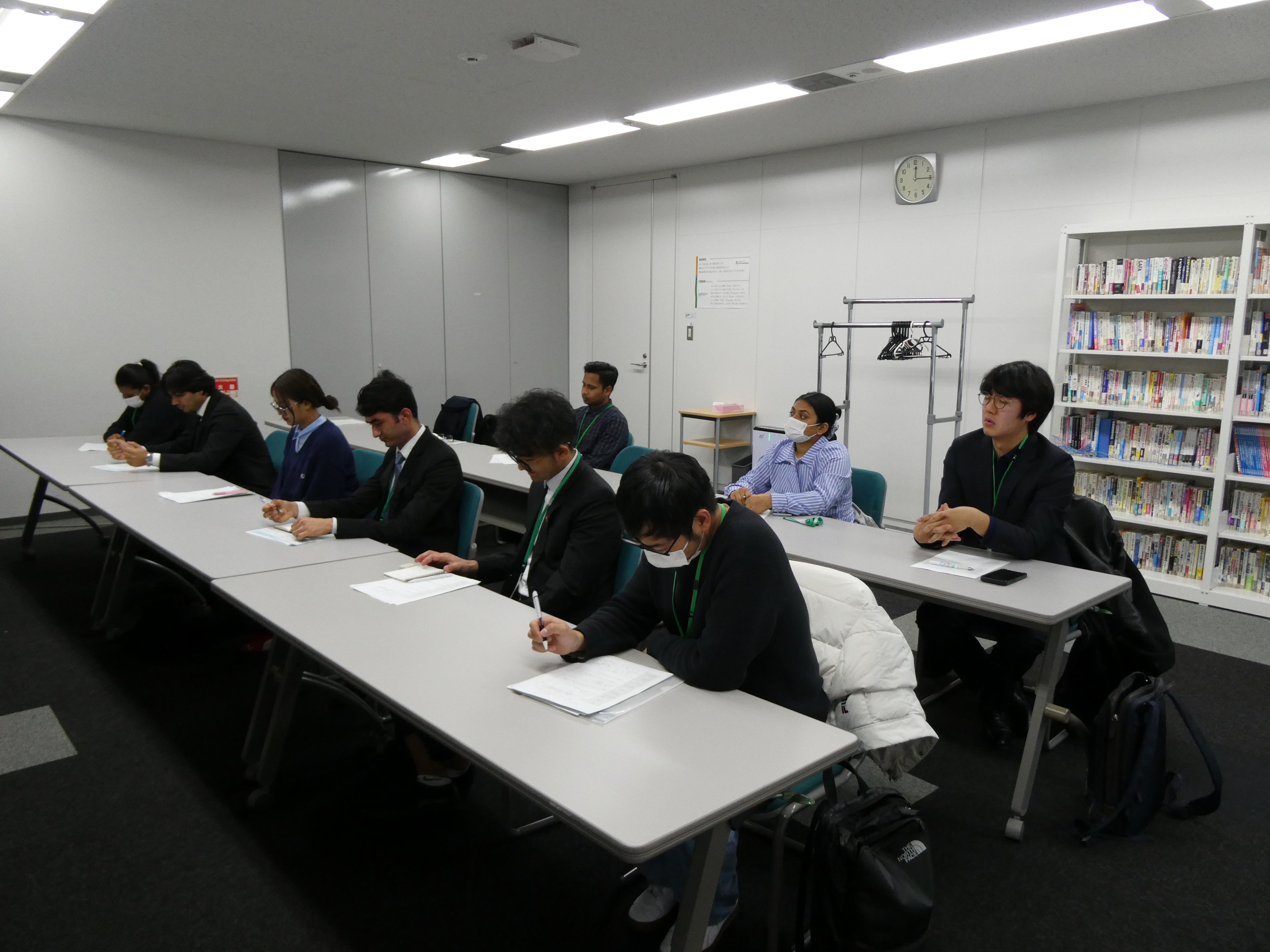 インターンシップ前のオリエンテーションでは、留学生たちは日本の就職活動の特徴や企業研究のポイント、ビジネスマナーについて学びました。また、訪問する企業について事前調査を行い、疑問点や関心事項を整理したうえでインターンシップに臨みました