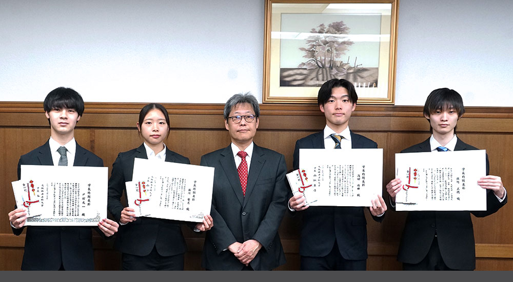 山垣学長は受賞者4名に対し、「今回の受賞は一つのステップに過ぎないと思います。次の目標に向けて頑張ってください」と激励しました。